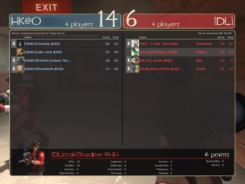 Well I know this sounds like an excuse, because it is, my vent fcked around with me on the first match leading me to restart. Once I got back on (after about 4 years) i played absolutely terrible. The screenshot gives no indication of the proper score, I started playing after we lost, doing some rather karate style body shots But sure good game lads and ladies
